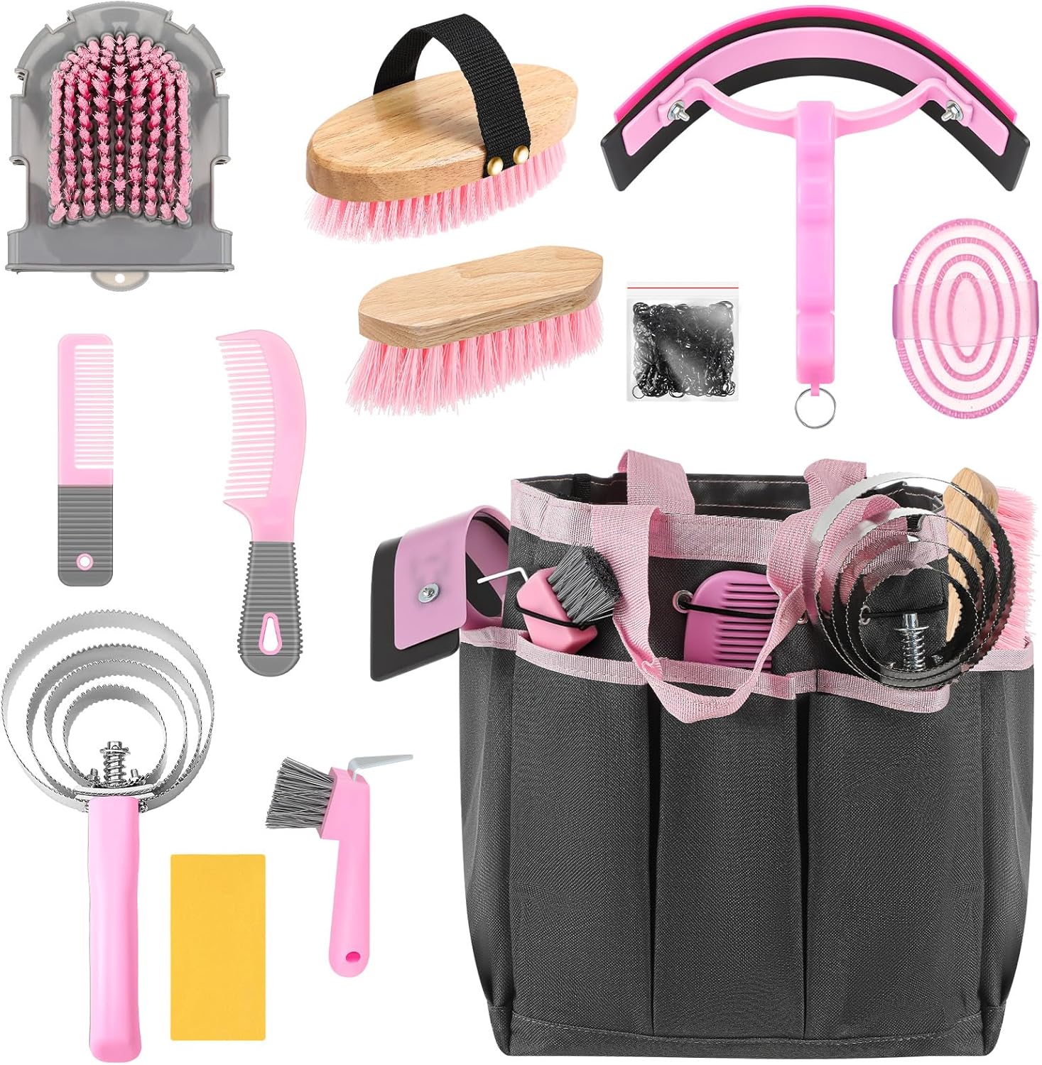 Complete Grooming Tote: this horse grooming kit provides all the basic brushes and accessories you need, keep your grooming tools neat, easily accessible, and ready to go with the included spacious horse grooming tote