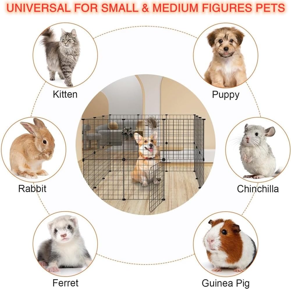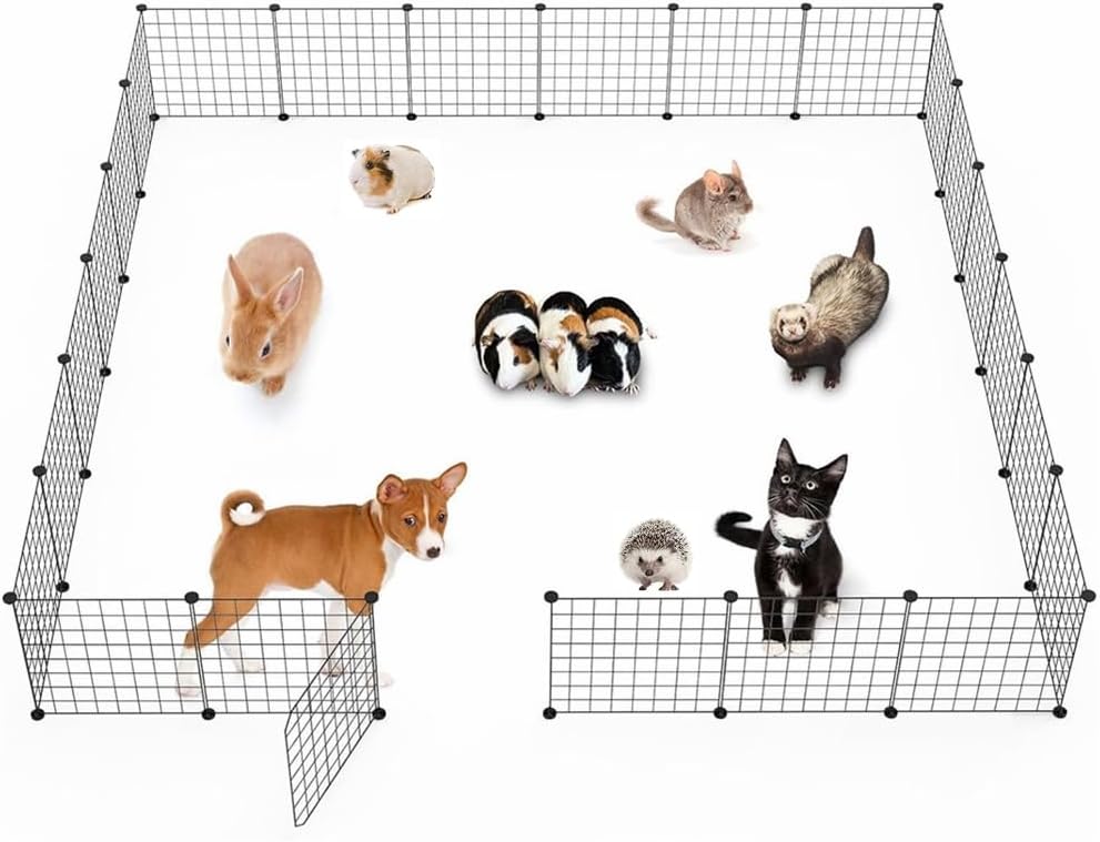 【Multiple Use Pet Enclosure】Specially designed for small and medium figures of animals, like kittens, puppies, guinea pigs, rabbits, ferrets, chinchillas, corgis, mice, hamsters, hedgehogs, turtles, and so on. Suitable for both indoor and outdoor use.The single piece size is 35CM * 35CM