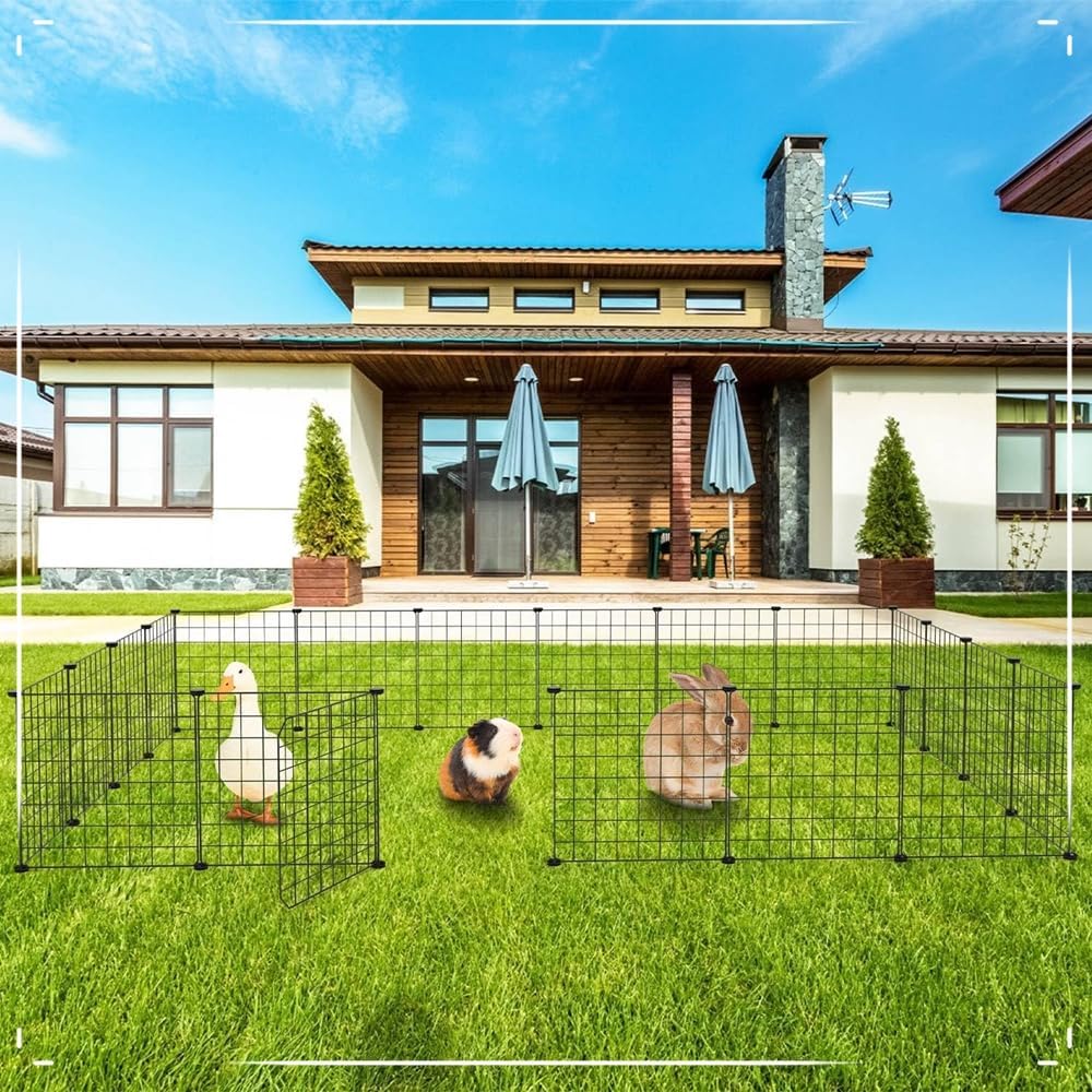 【DIY & Expandable Bunny Cage】Flexible-assembly metal wire dog playpen allows you to build a customized kingdom and playground for your beloved pet according to the available room, pet’s figure, and personal aesthetic. You can even purchase more products to set up storage places based on the dog fences indoor, holding snacks, toys, or other pet supplies.